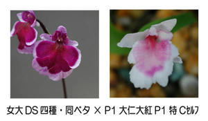 大輪大紅点のピンクを作るための戻し交配作り交配です。咲く花はこれといって特徴のない大輪大紅点花でしょうが、こういった戻し交配用もしていかないと行き詰まってしまいます。