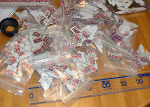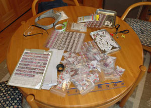 作業途中の画像 ラミネートフィルムを切り取りフラワーラベルに