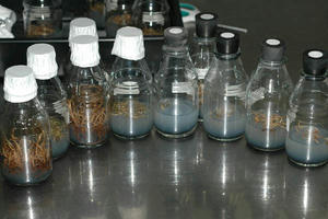 同じ母体に同じ花粉で交配した2鞘分の結果です。白キャップしている方と黒ゴム栓はそれぞれの鞘の発芽の状態です。