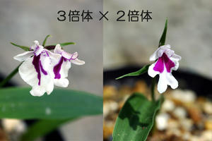 「おきなわちどり」さんのHPで3倍体交配のことが書かれていたので、イワチドリの3倍体交配の写真を紹介。種は出来ますが、ほとんど芽が出ません。成長しても葉がゴワゴワでいじけた花が多いのは事実。