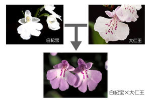 「白紀宝」と「大仁王」を交配します。 すべて並点の花が咲きますが、その中から比較的大輪で花形のいいものをセレクトし、大仁王系白花交配用(戻し交配用)に選別します。