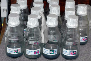 昨日播種した一部あと20数鞘で終了ここ2週間培地作りと