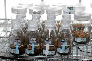 最終獅子ビン出し明日ポット植え、白花の獅子産出の戻し交配