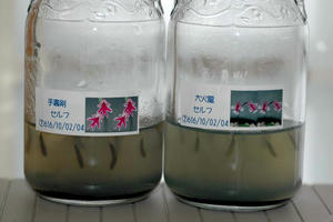 残念ながら、知恵が感じられない、交配です、どちらも、多分数が取れないでしょうし、分離して親に似た花は、一ビンで1~2本でしょう、朝日の交配より丈夫そうで、未だ救いが有りますが? 鬼面児