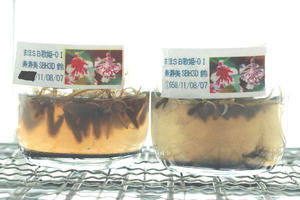 右は従来・左はこれからの方法・・・現在瓶移植の最中