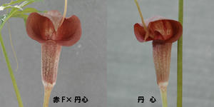 カタログに載せている交配のうち3種類のウラシマソウの赤花交配が咲きました。