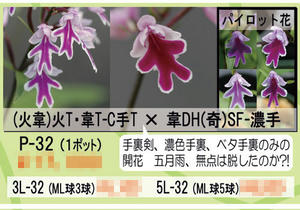 濃色手裏剣狙いの交配です。ビン1作で無理やりビン出しして咲かせたポットは濃色手裏剣、芸の甘い猿飛タイプ、手裏剣タイプとすべて一点系になりました。通常、手裏剣や韋駄天交配は無点タイプや五月雨タイプが咲きますが、この交配に限っては無点や五月雨は咲きませんでした。サンプルが少ないのでたまたまかもしれませんが、五月雨タイプなどが咲いても数がかなり少なくなるでしょう。もし、1本も咲かない交配なら無点五月雨地獄を脱したということになります。もともと「剣」から引っ張った韋駄天ですから無点の血があって当然ですが、それを抜くのに3代ほどかかるという結果になりました。