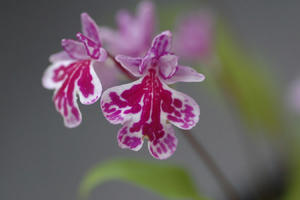 今年から出始めた新しいタイプの一点花で、一点花というより荒い紅点を全体に散りばめた斑紋花にも見えます。花弁の末端部分の紅点は霧点によるものでしょう。