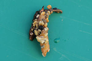 先日のDM-06の一番左側に写っていた球根の親球と新球の大きさの比較です。