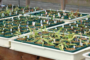 今年、ドリ-ム、シ-ドさんから持ち帰りのポット、球根が昨年の倍の長さ有るポットか、1,5倍に増えているポットに分かれました、いずれも、近年にない成績です。 鬼面児