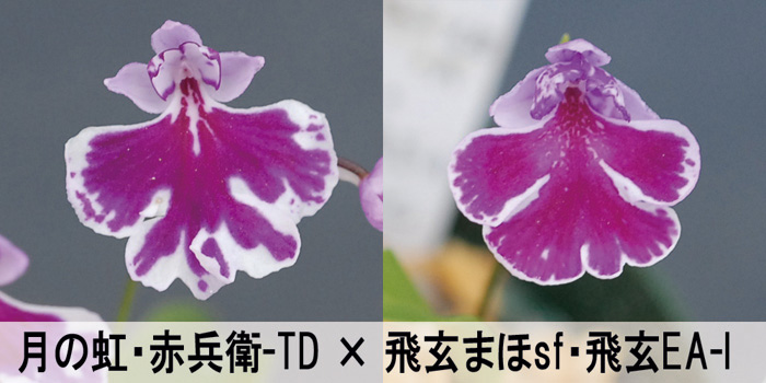 両親とも仮面騎士系の花なので、けっこう仮面騎士タイプが取れそうな感じです。欲をいえば小輪ではなく中輪タイプの仮面騎士系「木霊(こだま)」のような花がいくつか出てほしいところです。中輪タイプの方が目立ち、展示会向きな花なのでけっこう人気がありますよ。仮面騎士タイプの一番いいものと「木霊」を並べるとだいたいの人は高くても「木霊」を買っていかれます。